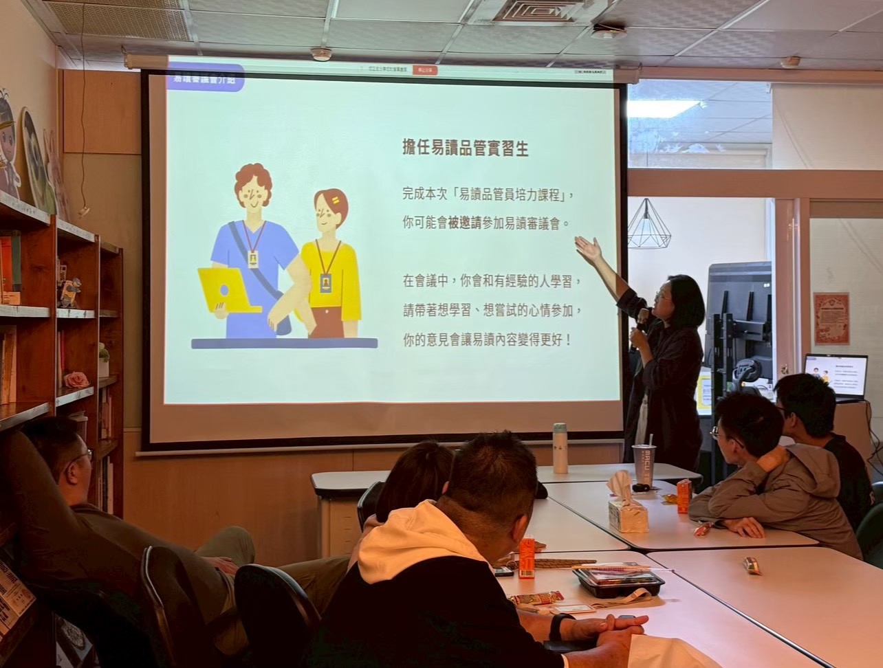 培力課程中向學生說明「易讀品管實習生」是什麼,以及他們需要做哪些準備。