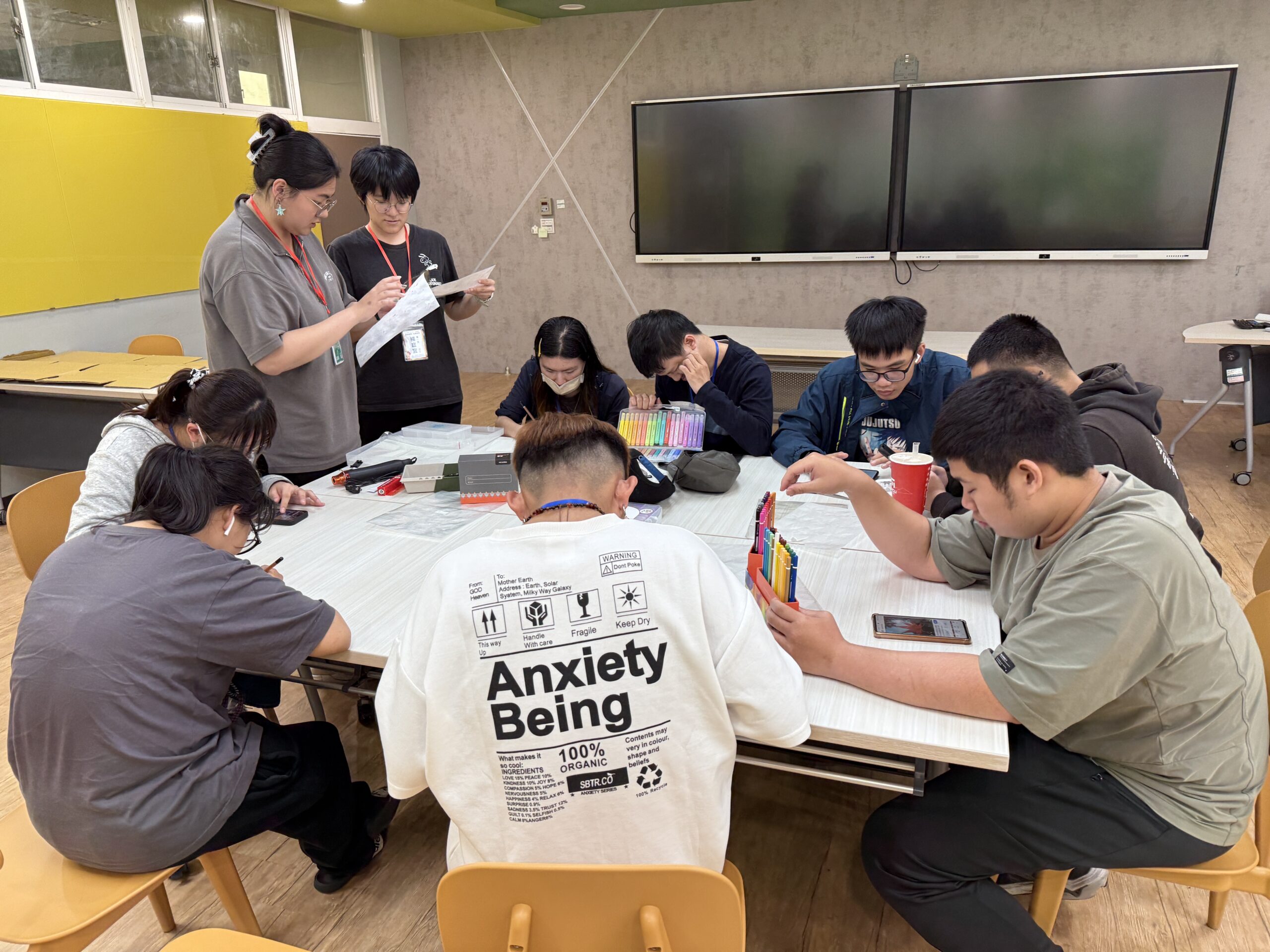 課程開始前,計畫團隊先向學員介紹材料與工具的使用方式,並示範基本製作步驟,讓大家了解安全操作及創作流程。在手作課程中,學員可以自由選擇自己感興趣的主題進行創作,有的設計可愛的吊飾圖案,有的設計色彩繽紛的霓虹燈牌。大家都十分投入,專注於剪裁、上色、組裝等每個細節,氣氛熱烈而充滿創意。