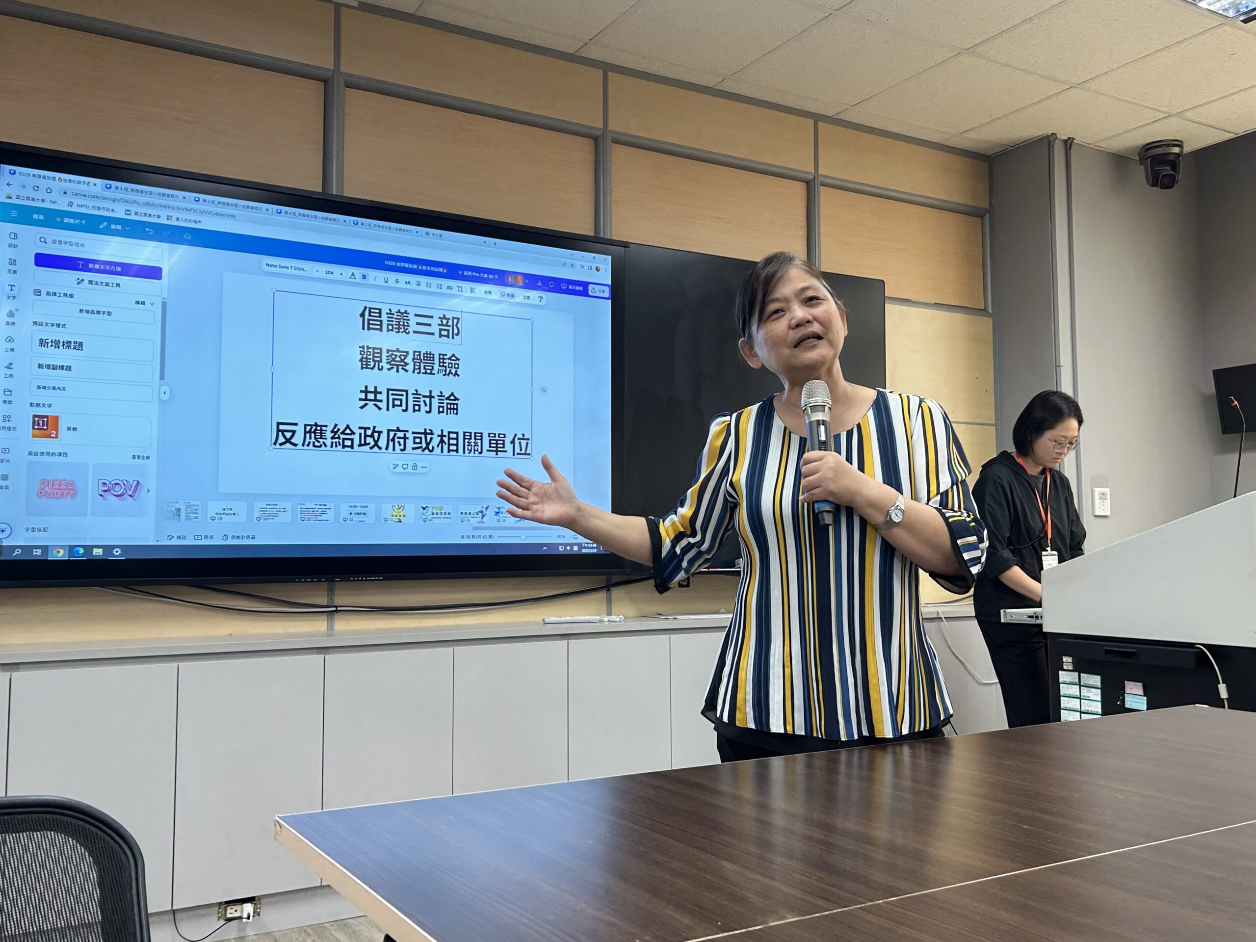 在正式進行報告前,計畫團隊先向學員說明什麼是「無障礙旅遊」,接著由計畫主持人陳麗圓老師引導大家了解觀察報告的製作方式與重點。