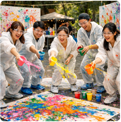 | 13:30 | 15:00 | 團體潑畫DIY體驗 | 小騙徒 | 社會技巧 團隊合作 |