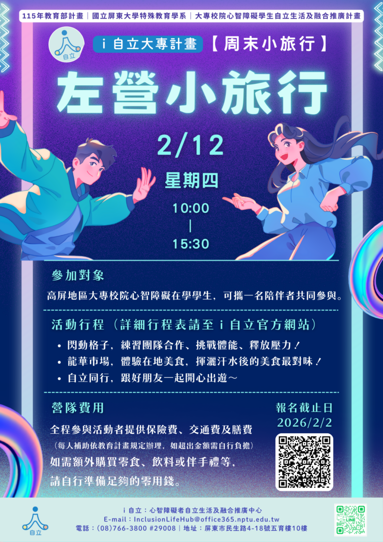 114【自立生活營隊】5/17(六)屏東一日遊:冒險王的挑戰